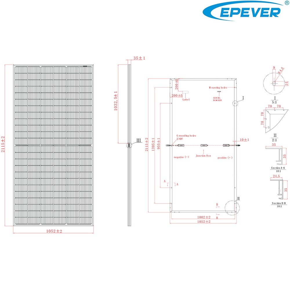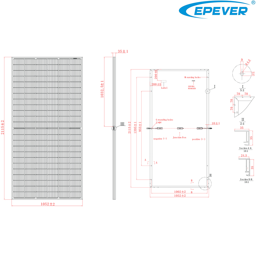 مشخصات فنی پنل خورشیدی EPEVER 480W: