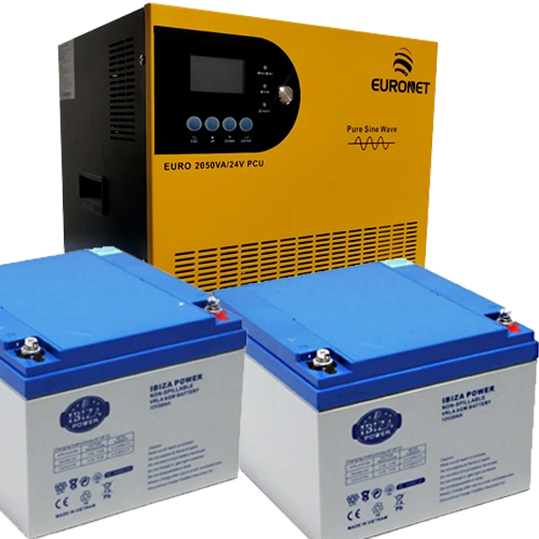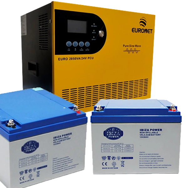 پکیج برق اضطراری یورونت ۲,۰۵۰VA تمامسینوسی + دو باتری AGM ایبیزا ۲۸Ah (ظرفیت مؤثر ۳۳۳Wh)